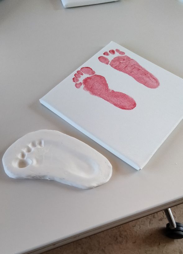 Eller I kan lave aftryk på selvhærdende ler. Alle materialerne er godkendt til babyaftryk. I får selvfølgelig aftrykkene med hjem